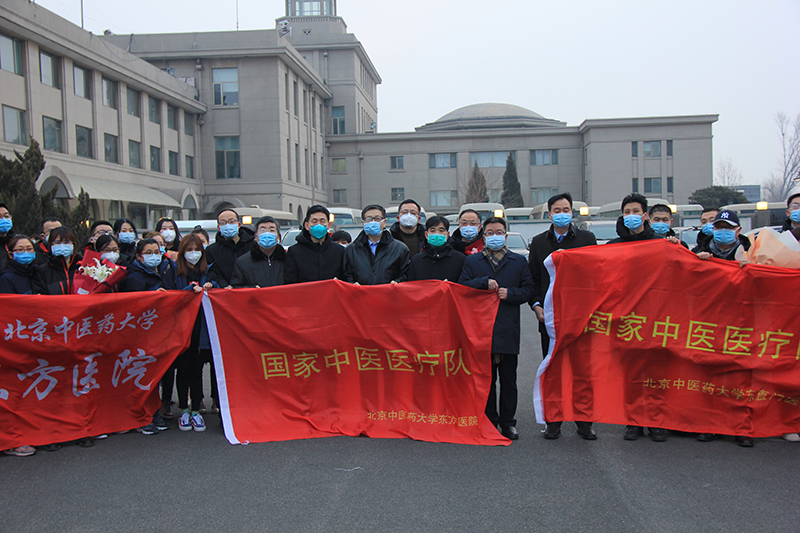 北京中医药大学40名医护人员集合完毕