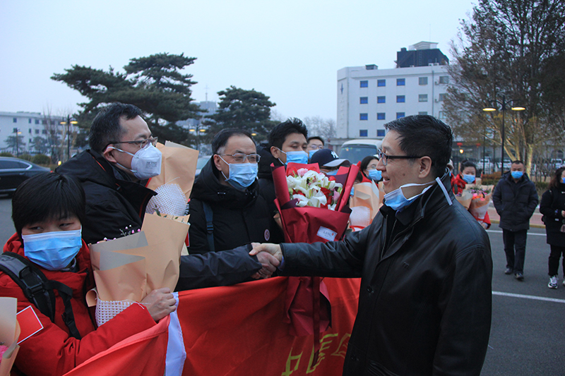 国家中医药管理局副局长孙达,北京中医药大学校长徐安龙等到首都机场为医疗队送行。孙达代表国家中医药管理局向医疗队每一位成员表达了崇高敬意和衷心感谢,表示深深为大家“舍小家为大家”的奉献精神和“舍我其谁”的担当精神所感动,希望医疗队坚决贯彻落实以习近平同志为核心的党中央交给中医药系统的重大政治任务,不辱使命、不负重托,坚持中西医结合,积极参与一线防控救治各项工作。孙达嘱托医疗队成员一定加强自我防护,如果个人家庭遇到困难,随时向所在单位党组织和国家中医药管理局提出,一定帮助大家解决好后方困难。