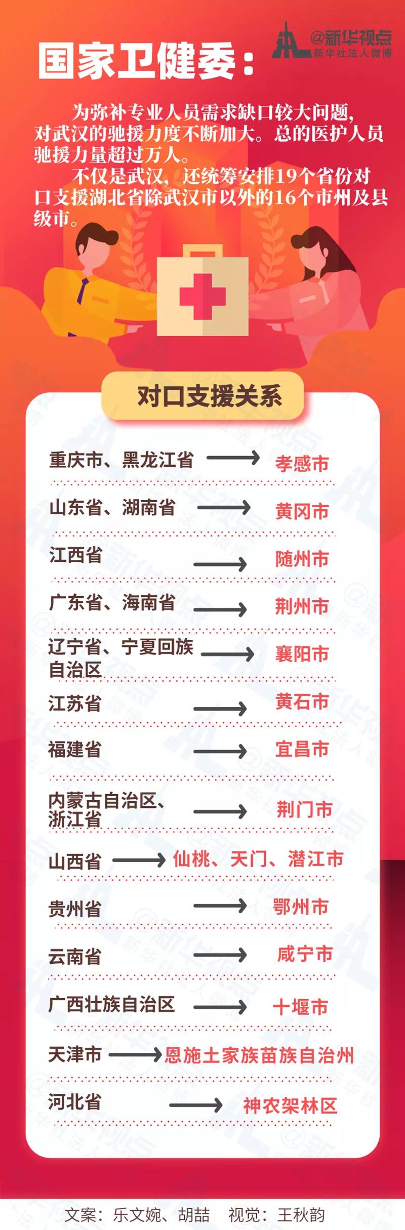 现在,全国各地驰援的100多支医疗队、上万名医务人员奋战在荆楚大地,还有19个兄弟省份对口支援除武汉外的16个市州及县级市。这都充分彰显了全国一盘棋的制度优势,体现了一方有难、八方支援的血肉深情。
