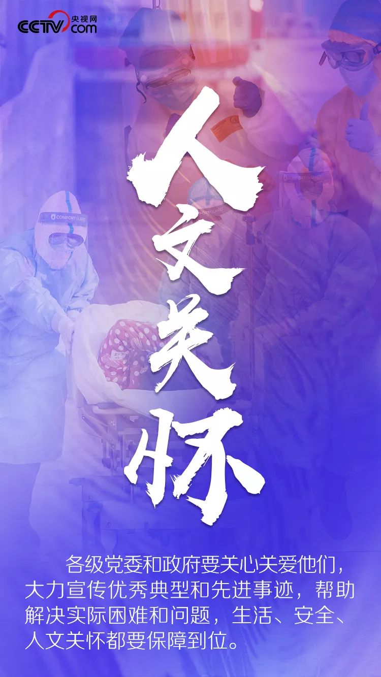 “医务人员是战胜疫情的中坚力量,务必高度重视对他们的保护、关心、爱护,从各个方面提供支持保障,使他们始终保持强大战斗力、昂扬斗志、旺盛精力,持续健康投入战胜疫情斗争。”近日,习近平总书记就关心爱护参与疫情防控工作的医务人员专门作出重要指示。