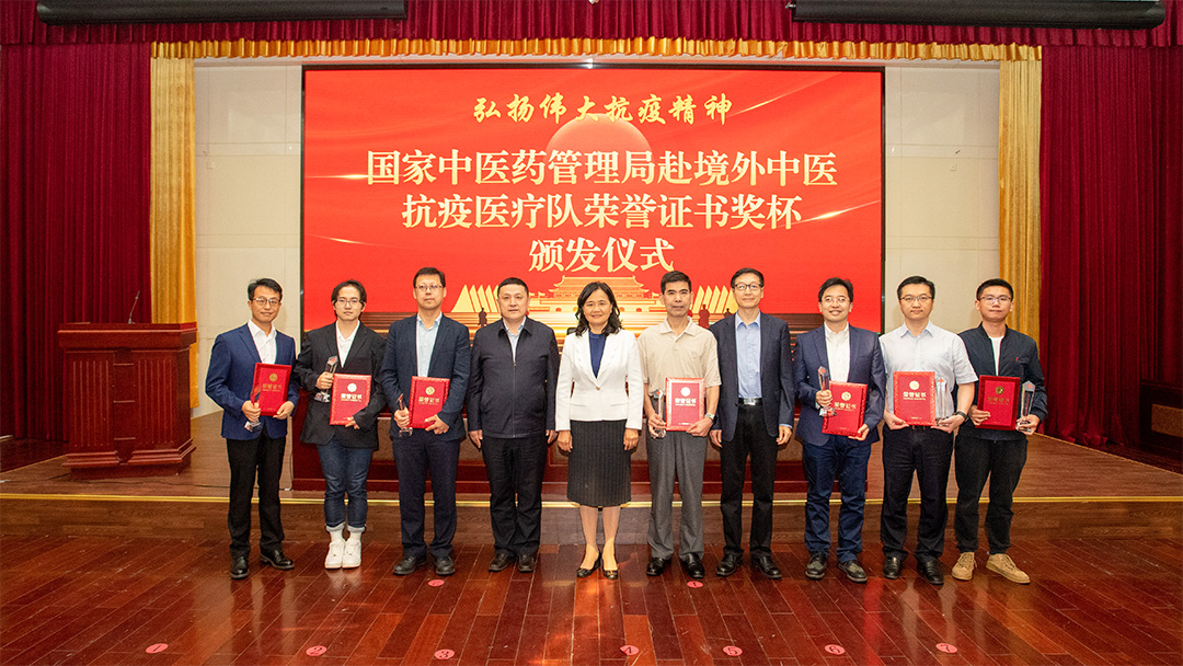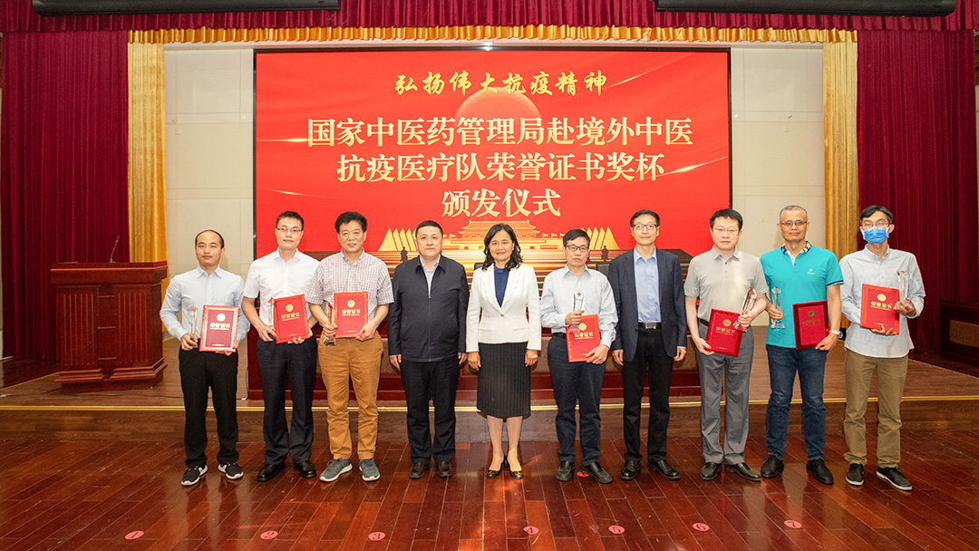 5月31日,国家中医药管理局与国务院国有资产监督管理委员会共同举办赴境外中医抗疫医疗队荣誉证书奖杯颁发仪式,对赴境外救治感染新冠肺炎中资企业员工的三支中医抗疫医疗队进行表彰。国家卫生健康委党组成员、国家中医药管理局党组书记余艳红,国务院国有资产监督管理委员会境外办副主任柳长森出席仪式并讲话,国家中医药管理局党组成员、副局长孙达主持活动。