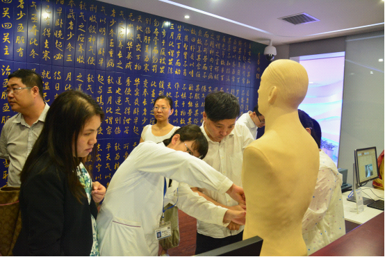 调研组考察了天津慧医谷研发生产的中医经络腧穴解剖教学平台教学与考核系统、中医望诊与切诊信息采集系统的演示及健康小屋健康档案管理资料的收集;考察了天津天堰公司研发生产的中医舌诊、脉诊系统、针刺练习与考核系统、模拟中药药房及中药鉴识3D虚拟技术、中医临床思维综合训练系统及OSCE考试考务及评分系统等,并与两家公司进行了座谈与充分交流。陈伟表示,现行医师资格考试仍以传统的纸笔考试、手工评分与录分为主,现代化技术手段应用不够,信息化程度不够。不久前,在天津中医药大学牵头下,中心与两家公司的深入座谈促成了此次的实地考察,通过深入交流,拓展了我们改进考试方式的思路。天堰公司是拥有国家保密局颁发的“涉密信息系统集成”甲级资质的上市公司,我们愿意与两家公司进一步沟通洽谈,开展多领域多项目合作,在保证考试安全的前提下,共同推动中医药考试事业的发展。王振宇表示,有教就有考、有考就有评,考试一定程度上能够反映出教育的水平,考试质量的高低也一定程度上能够影响教育的质量。作为国家级中医药考试机构,中医药考试如何体现中医药特色、如何体现中医临床思维是我们亟待解决的问题。中心希望与同样致力于中医药事业发展的企业同道,共同打造规范化、技术化、信息化和智能化的中医药考试系统。